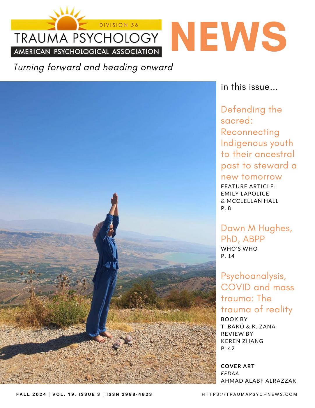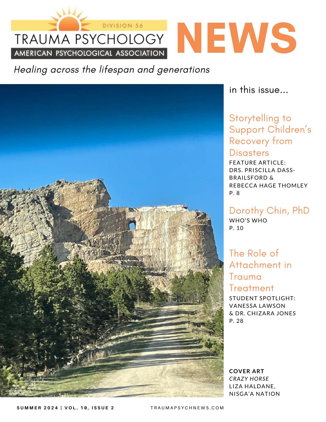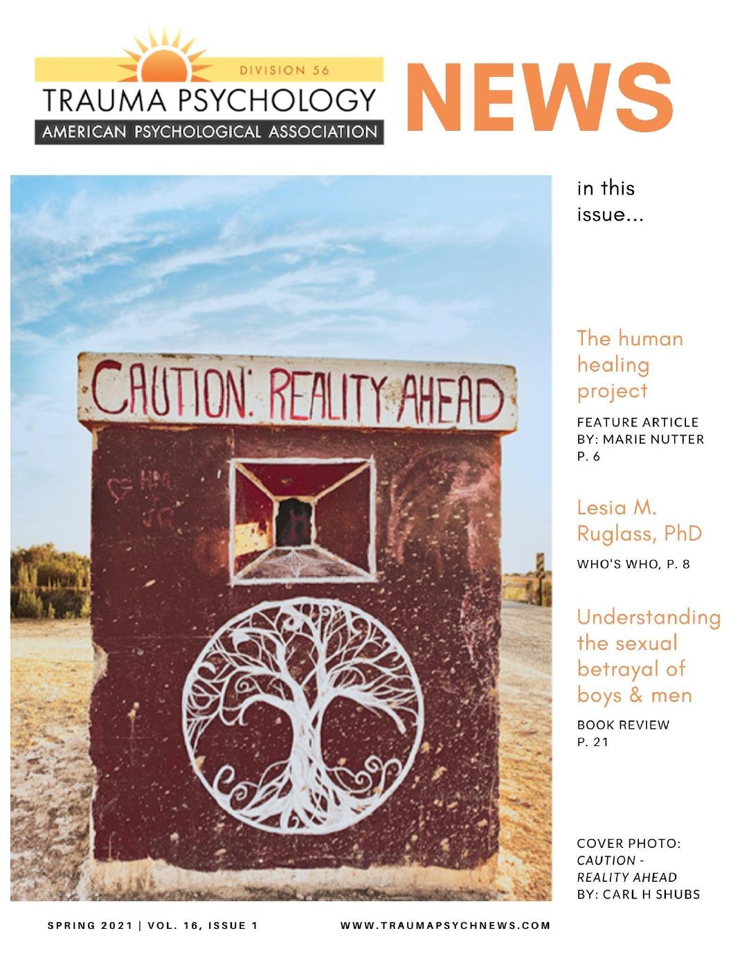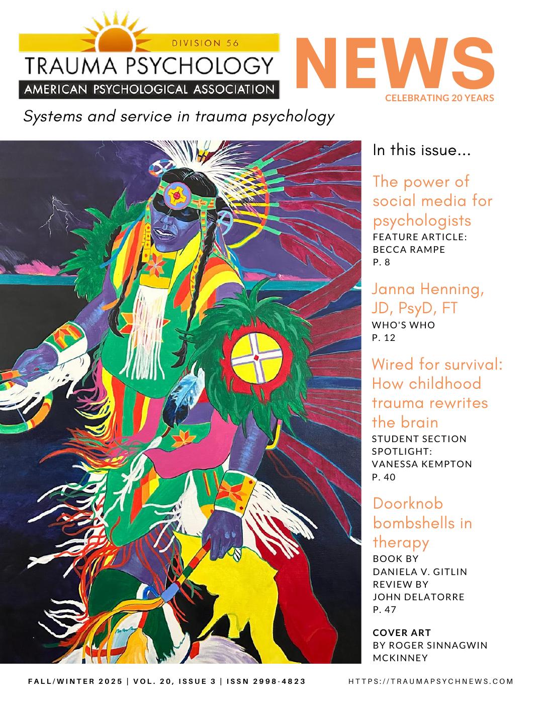 TPN is distributed to the entire Division 56 membership, which includes academics, clinicians, students, and affiliates who share a common interest in trauma psychology, as well as to interested parties via the Division website. Unless otherwise stated, opinions expressed by authors, contributors, and advertisers are their own and not necessarily those of APA, Division 56, the editorial staff, or any member of the editorial advisory board.